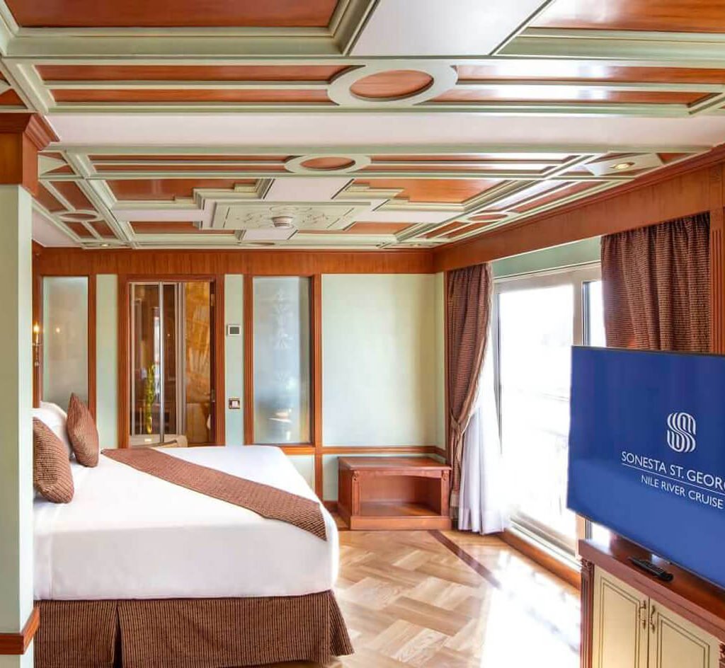 El Sonesta St. George Nile Cruise es un crucero de lujo 5 estrellas. Con un estilo francés distintivo de “fin de siglo”, este elegante crucero todo-suites comenzó a operar en 2006. El Sonesta St. George I ofrece alojamientos lujosos que brindan la máxima comodidad, elegancia y diseño, con 47 cabinas deluxe, 9 suites presidenciales y una suite real, todas con muebles de alta calidad y comodidades de lujo. Durante tu viaje, visitarás: el Templo de Karnak, el Templo de Luxor, el Valle de los Reyes, el Templo de la Reina Hatshepsut en Deir El Bahari, los Colosos de Memnón, el Templo de Horus en Edfu, el Templo de Kom Ombo, el Obelisco Inacabado, el Templo de Filae y la Alta Presa.